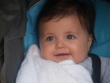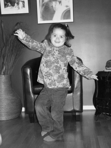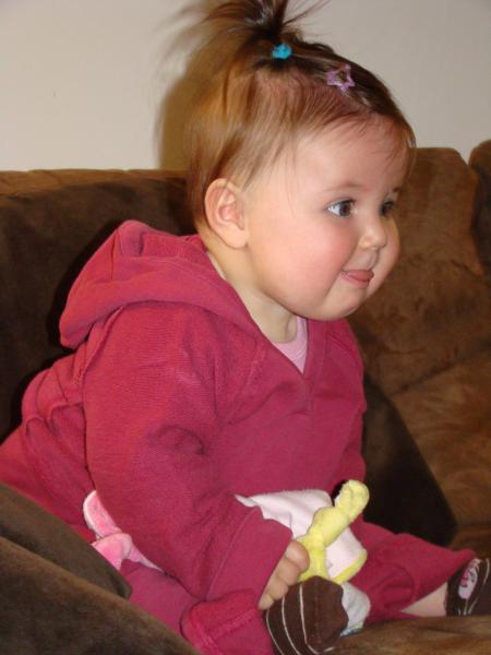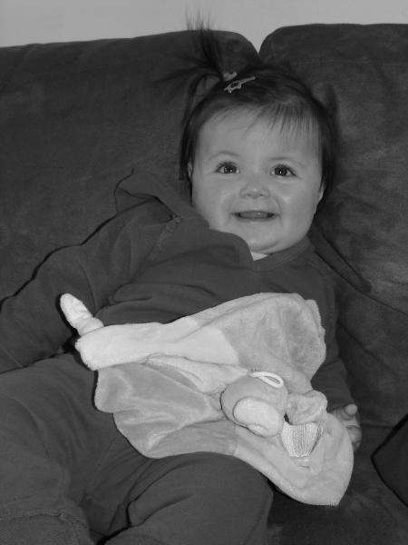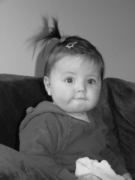 Une p'tite canaille tient assise