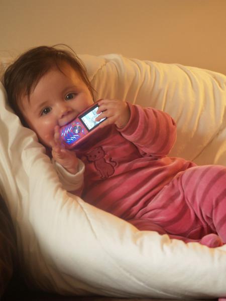 C'est officiel, Léana dit "Mama" pour le plus grand bonheur de sa "maman"... et se laisse prendre en photo avec des accessoires, un vrai "bébé star
