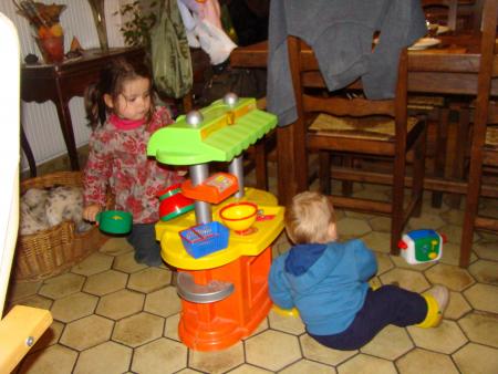 Après un déj chez Pat & Vince et de bien jolis moments de complicité entre cousins et cousines avec Léo et Lili... les filles "Lassalle" ont pris la route en direction de Saint Brice... puisque Daddy devait partir à Clermont pour 3 jours. Bref, Mathéa et Léana ont profité de Pépère, Pacha, Loïs, Tata Nadège, Jean-Sé... Michel, Annick, Maud, David, Victor, Marc et Laetitia... et bien sûr, Mamie et Claude !!! Au fait, Loïs marche depuis 10 jours, comme un chef !!!