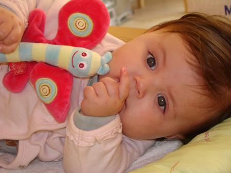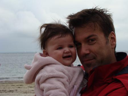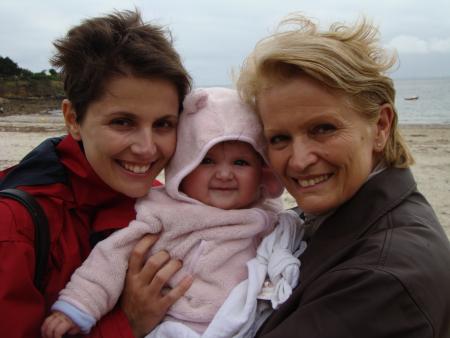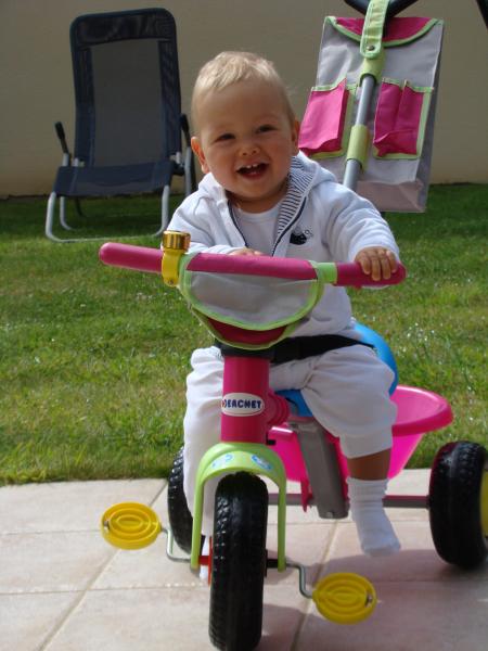 Pendant qqs jours, la maison de Sarzeau était calme, il n'y avait que Mamie, Claude, Maman et moi... c'était plutôt chouette, toute l'attention était portée sur moi ! Et puis, mardi soir, papa est arrivé avec Mathéa et je dois dire que j'étais contente de les retrouver tous les deux, ça faisait presque dix jours que je ne les avais pas vus !!! Le lendemain, mercredi en fin de matinée, sont arrivés mon cousin Lois, tata et Jean-Sé... La maison de Sarzeau est devenue un terrain de jeux, imaginez 3 enfants, et 6 adultes ?! En plus, Lois a un nouveau passse temps, il crie quand il n'est pas content, mais bon chacun s'exprime comme il peut. C'était tout de même sympa de se retrouver tous ensemble... mais je pense qu'à l'heure qu'il est, Claude et Mamie apprécient le calme, et moi je profite d'eux toute seule parce que je suis restée qqs jours de plus en vacances... Ah, j'allais oublier, j'ai commencé depuis 2 jours, à manger des purées légumes au déjeûner et des compotes de fruits au goûter, miam miam !!!