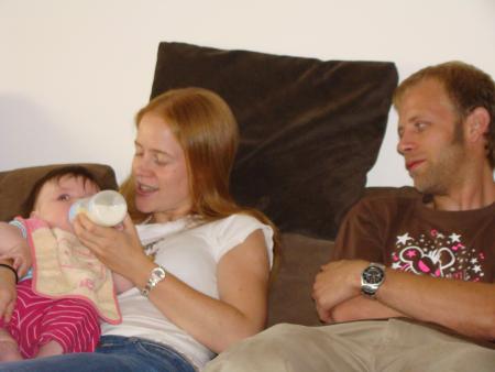 Dimanche 10 aout, Marc et Laétitia sont arrivés à l'appart en renfort! Matthieu est aux US pour le boulot et la maman est tout de même un peu fatiguée. Bref, il lui fallait donc de l'aide pur s'occuper de la Miss Léana. Pour info : Mathéa est partie en vacances avec Kouka et Jean-Marc jusqu'à la fin de la semaine. Léana, fidèle a elle même a été adorable avec ses "nounous" de 1er choix; elle a charmé Marc tous les jours et a beaocoup rit avec Laétitia, que du bonheur !!!