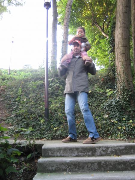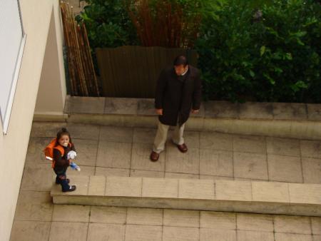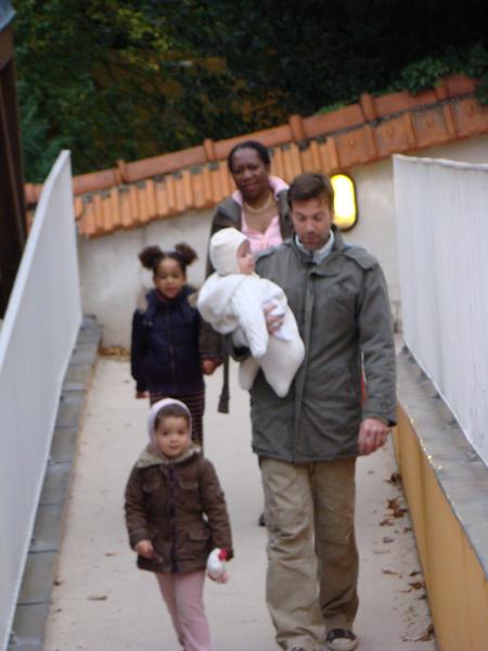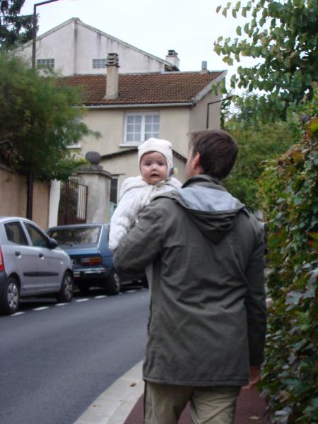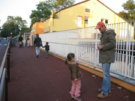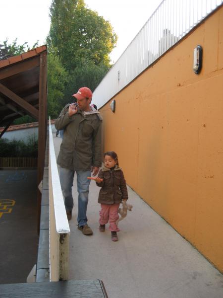 Ce matin, toute la p'tite famille se rend à l'école de Parc Cheviron, Mathéa est ravie que Léana soit de la partie, elle pourra présenter sa "soeur" à Inès !!! Petite erreur : ne pas avoir pris de poussette pour Léana ; du coup, elle a fait une partie du trajet dans les bras de maman, l'autre dans ceux de papa... que du bonheur pour elle ; un bon mal de dos pour les parents, 10 kilos, ça pèse !!!